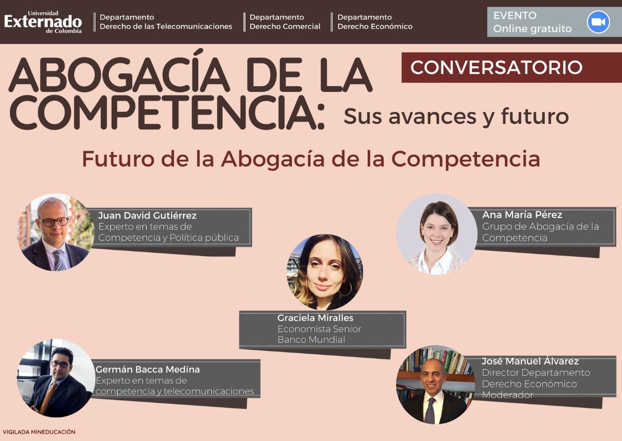 Tendré el gusto de compartir el panel con Ana María Pérez, Coordinadora del Grupo de Abogacía de la Competencia de la Superintendencia de Industria y Comercio, Graciela Miralles, Economista Senior del Banco Mundial, y German Bacca, experto en temas de competencia y telecomunicaciones.
