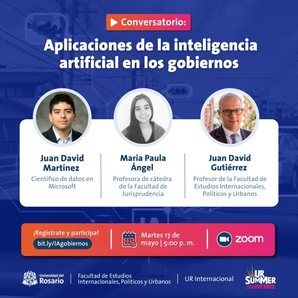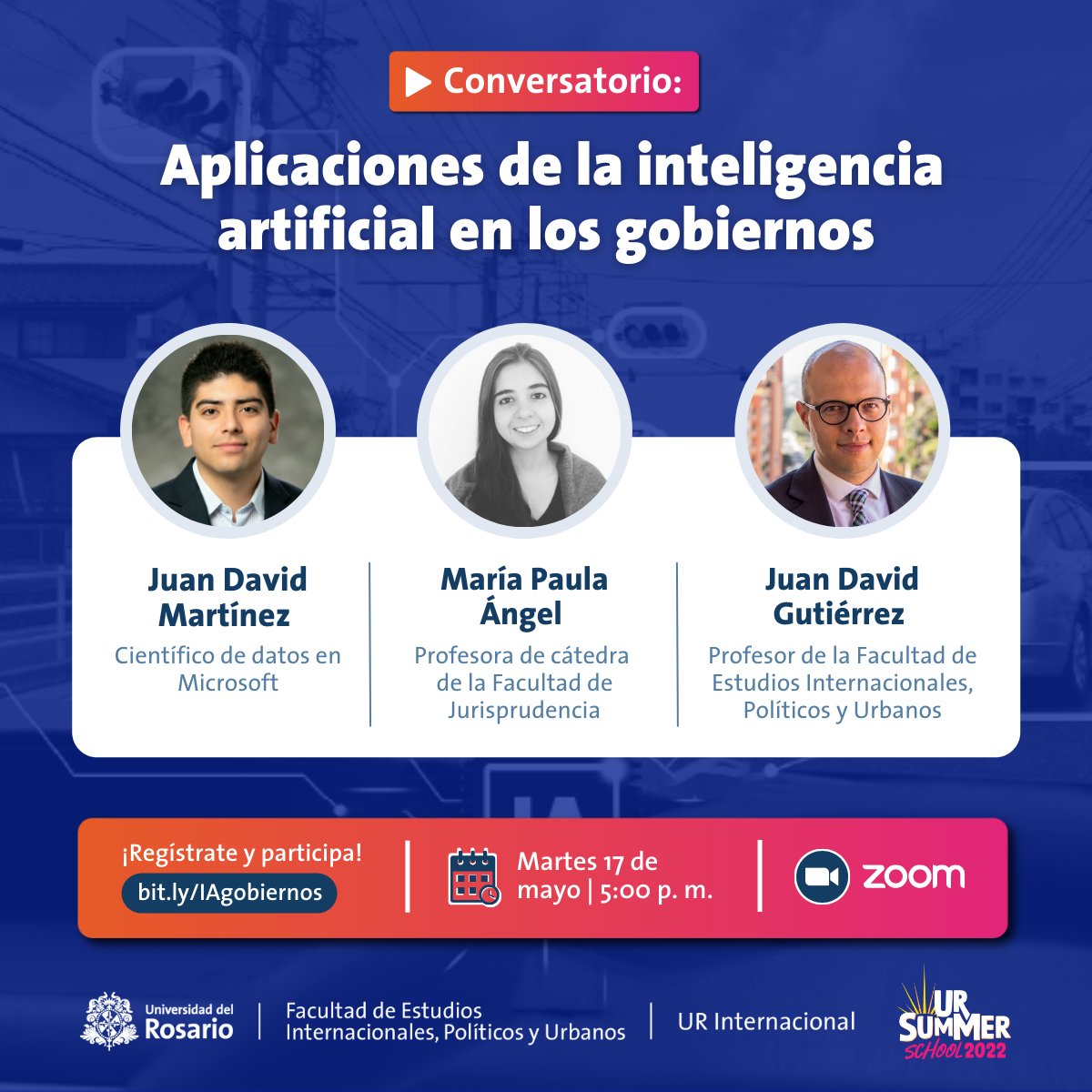 Conversatorio virtual sobre usos de la IA por los gobiernos (17 de mayo) By Juan David Gutiérrez R. | 16 mayo, 202216 mayo, 2022 Para recibir el enlace de Zoom del evento deben inscribirse en este enlace: https://bit.ly/IAgobiernos Compártelo: Haz clic para compartir en X (Se abre en una ventana nueva) X Haz clic para compartir en Facebook (Se abre en una ventana nueva) Facebook Me gusta Cargando... Relacionado